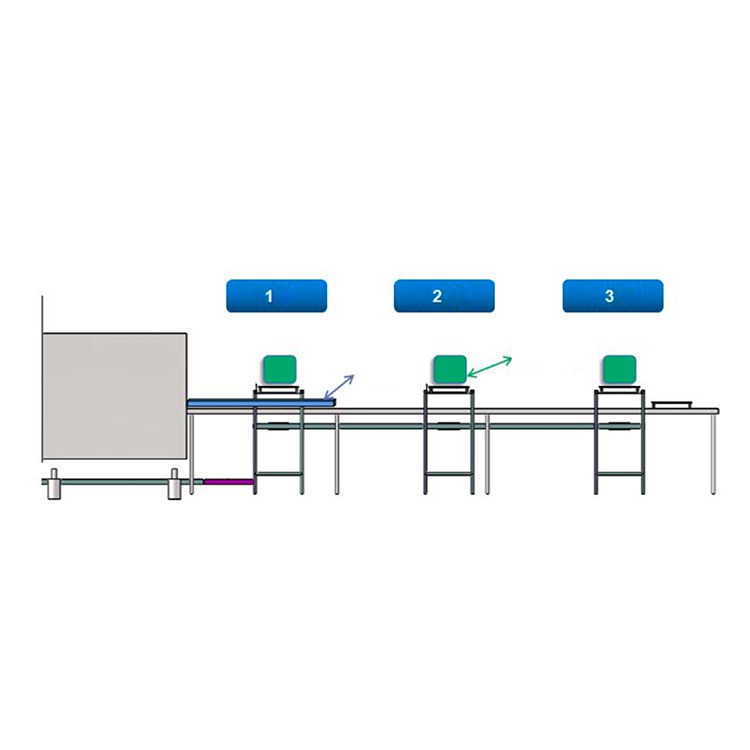 2. Kiedy taca zostanie przesunięta w pobliże punktu przetwarzania, system automatycznie identyfikuje informacje na etykiecie i wykonuje operacje przetwarzania zgodnie z ustaloną procedurą. Te, które wymagają przetworzenia, wchodzą do punktu przetwarzania i kontynuują pracę bez przetwarzania.